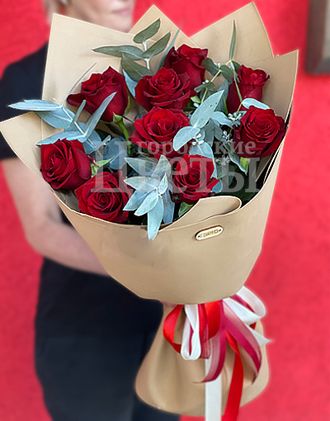Букет из роз Эквадор (7 шт) с эвкалиптом 5500 Оформить заказ Размер: высота ~60-70 см Состав: розы Эквадор, 9 шт. эвкалипт - 2 ветки фоамиран лента атласная белая лента атласная красная лента атласная белая Размер: высота ~60-70 см Состав: розы Эквадор, 9 шт. эвкалипт - 2 ветки фоамиран лента атласная белая лента атласная красная лента атласная белая