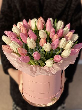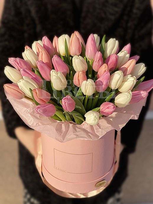 51 тюльпан в шляпной коробке 13750 Оформить заказ Размер: высота ~50 см Состав: тюльпаны, 51 шт. аквапакет коробка шляпная, 1 шт. Размер: высота ~50 см Состав: тюльпаны, 51 шт. аквапакет коробка шляпная, 1 шт. С букетом можно подарить:Конфеты "Ferrero Rocher"1 200 ₽ Мишка "Веня"1 200 ₽ Конфеты "Rafaello"800 ₽